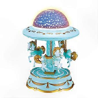 SBSGV Nouveauté LED Merry GO Round Boîte à Musique Carrousel Boîte À Musique Ornement De Bureau (Bleu)