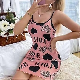Femmes Chemise De Nuit Couleurs Contrastées Coeur Imprimé Pull Adapté à la peau Confortable Satin Surface Lisse Spaghetti Strap Confortable Femmes Nuisette