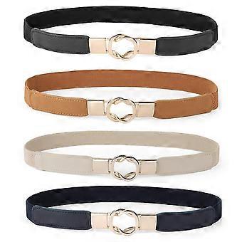 Femmes Skinny Belt Pour Robes Retro Stretch Ladies Ceinture Plus Taille Ensemble De 4-noir + marron + bleu