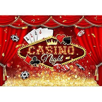 Décoration de décor de casino pour une fête d'anniversaire : rideau rouge avec dés et bannière Las Vegas