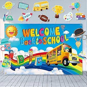 Welcome Back to School Banner, compatible with classroom decor, school bus backdrop, party supplies for bulletin board