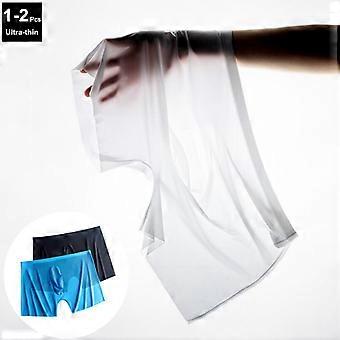 1-2 Pcs Ultra-thin Men Underwear Sexy Transparent 2022 New Mesh Ice Silk Boxer Shorts Naked Seamless Plus Size