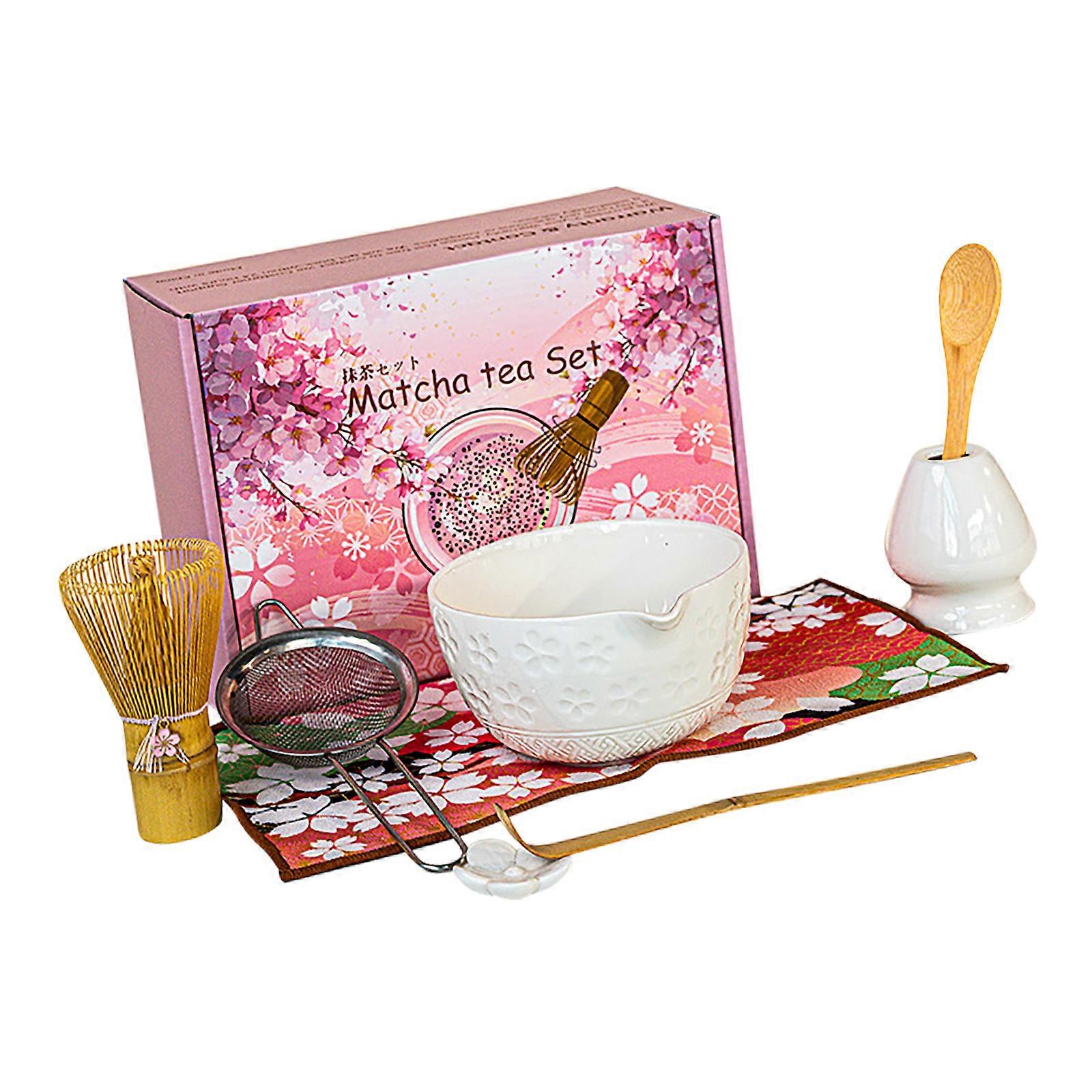 Japanese Encouraged 8 Part Matcha Tearoom Set Green Earthenware Cups And Container With Heat Holding White