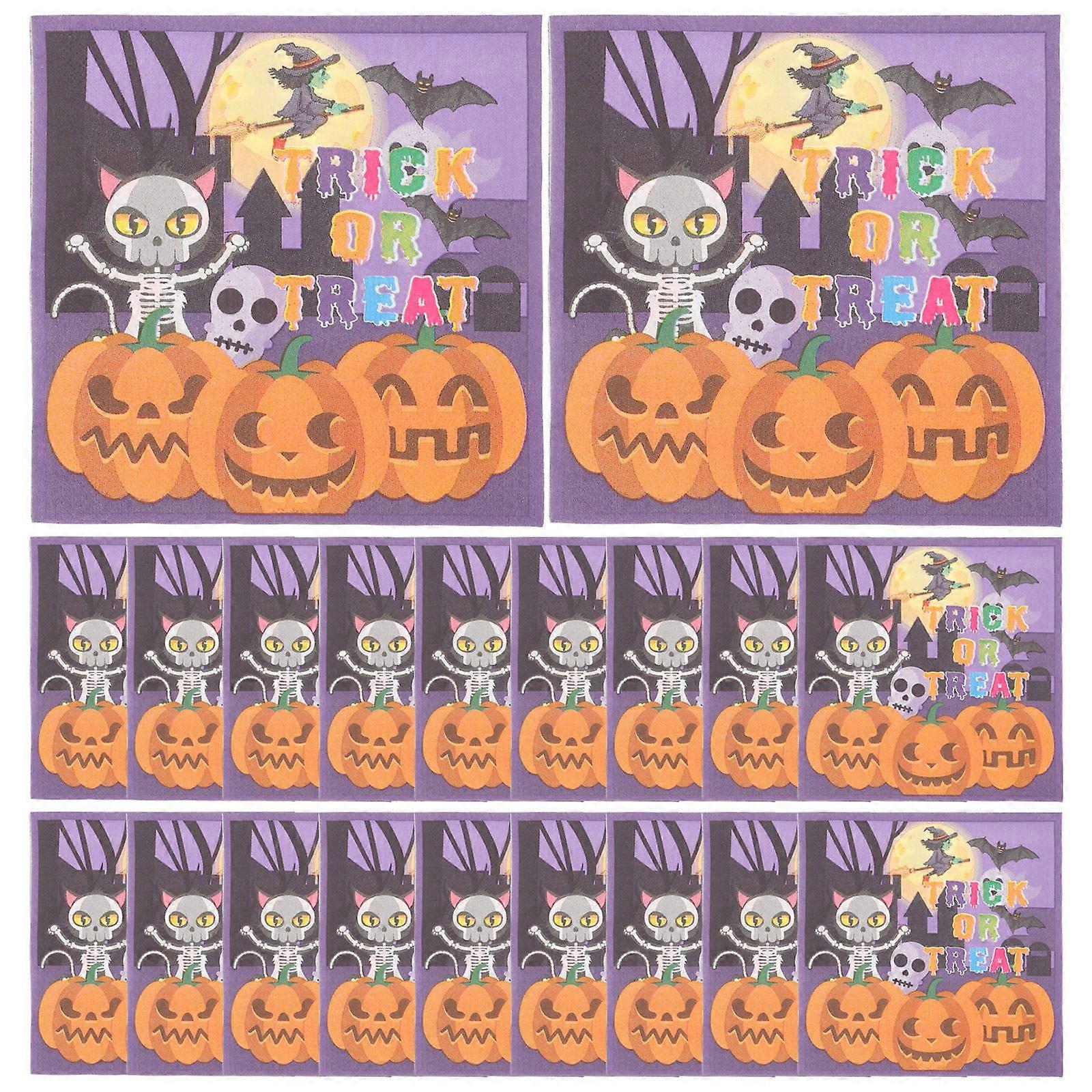 Halloween Tableware Tissue Napkins for Party 40Pcs Pumpkin and Bat Design