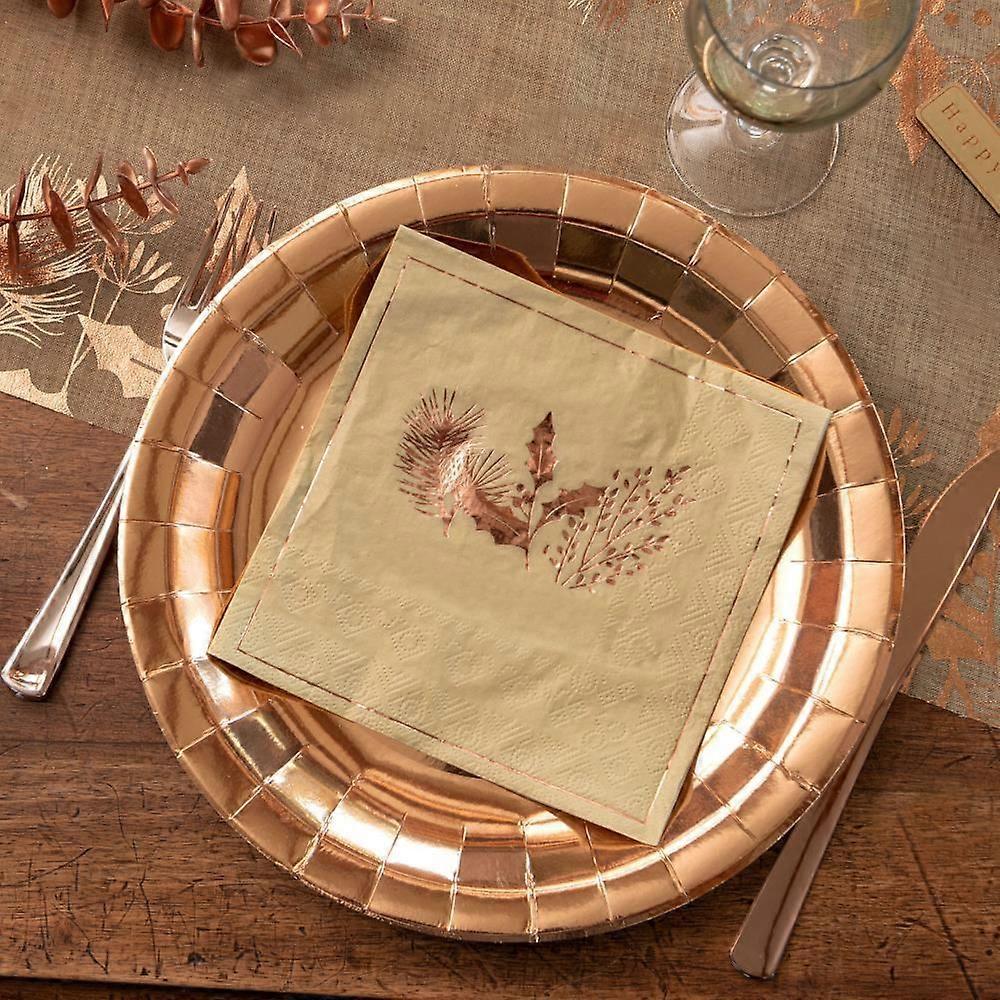 Olive Green Napkins with Gold Holly