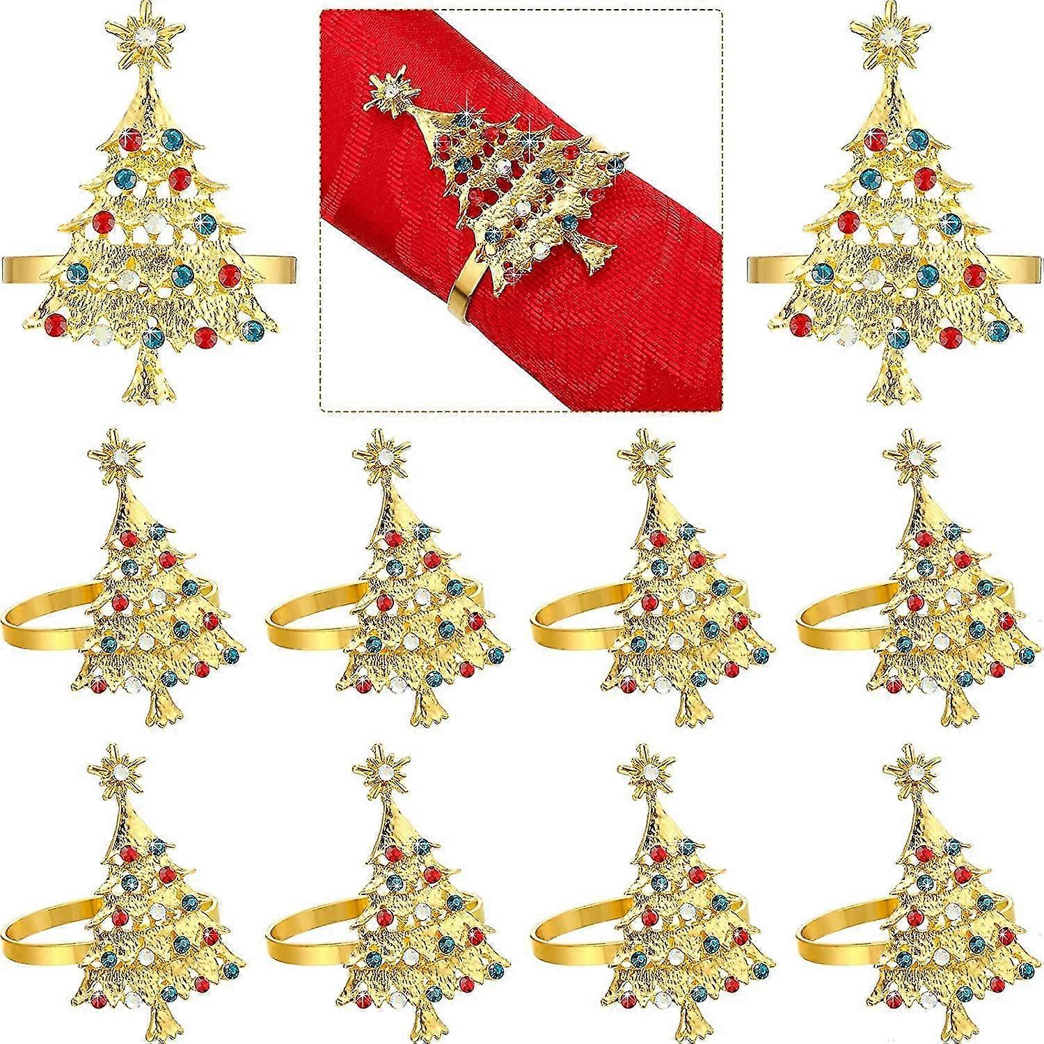 Set Of 12 Christmas Tree Napkin Rings Table Decor (gold)