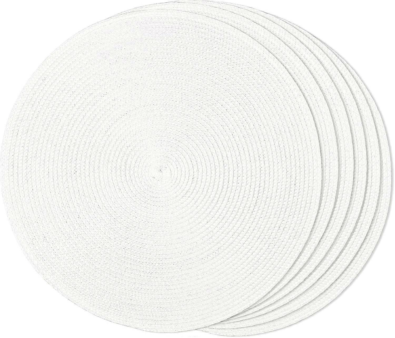 Round Braided Placemats Set of 6 Table Mats for Dining Tables Woven Washable Non-Slip Place mats
