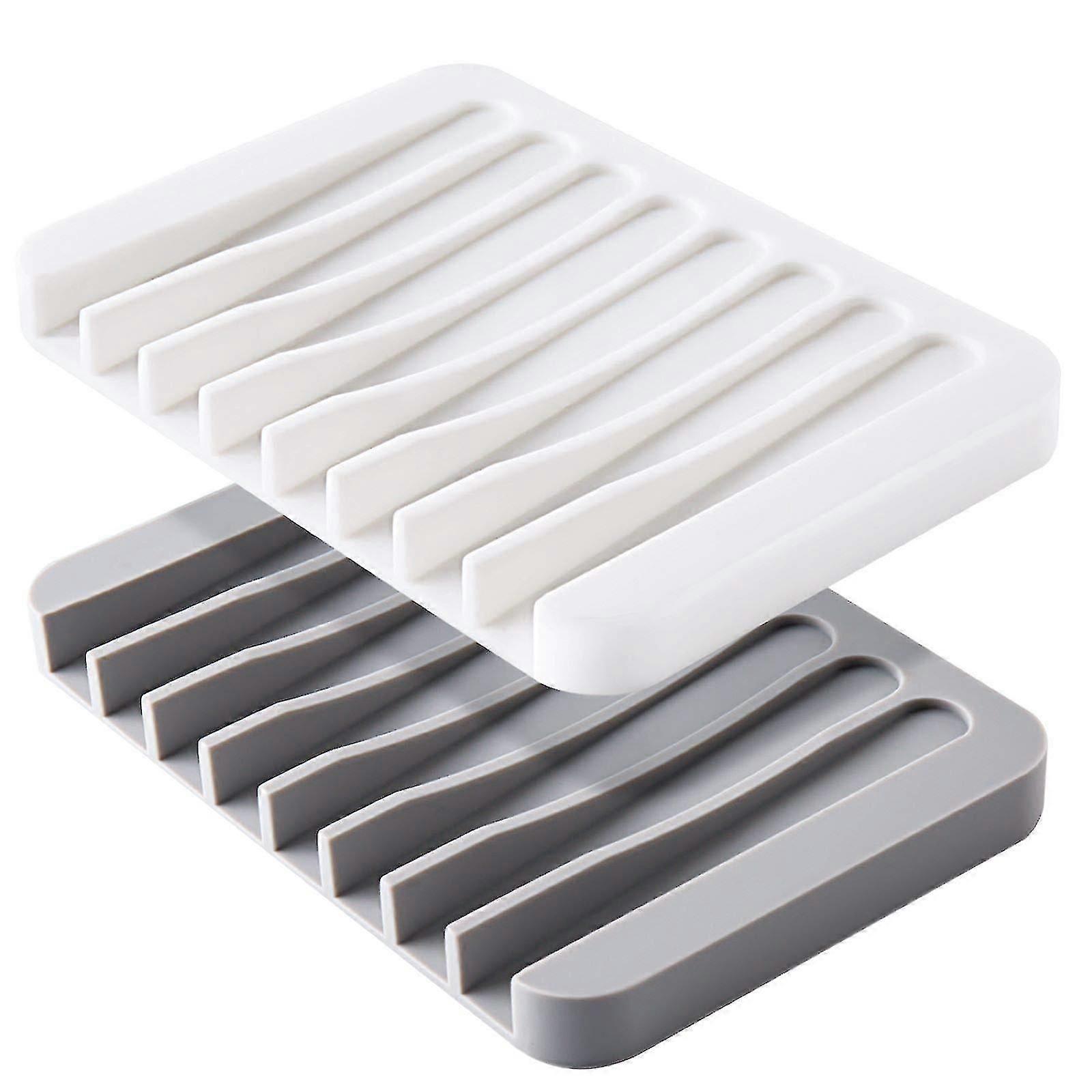 Wide UseThis soap dish can be used in bathroom, kitchen and other places. These soap trays are mainly used for household showers, bathtubs, dishwashing sponges, cleaning balls, men's razors, shampoos, body washes, women's hair clips, earrings and other small items. Simple, Practical and Easy to CleanOur soap holder is simple, beautiful and very practical. Easy to clean with just a little water or a small damp cloth. If you don't want to hand wash, you can also consider washing in the dishwasher. Non-Slip, No Water AdditionThis soap saver is designed with grooves to prevent soap from falling. The soap dish features a self-draining sloped sink design. It drains very well, the soap dries quickly, prevents the soap from melting and prolongs the life of the soap. Anti-rust, anti-corrosion, not easy to breakThe perfect kitchen sponge or soap holder is made of high-quality eco-friendly silicone. Almost no odor, adults and children can use it with confidence. Soft, don't worry it will damage or hurt other items. Package List2pcs soap dish (1 white + 1 grey), our friendly customer service. If you have any problem while using it, you can contact us anytime, we will definitely provide you with a 100% satisfactory solution within 24 hours.
