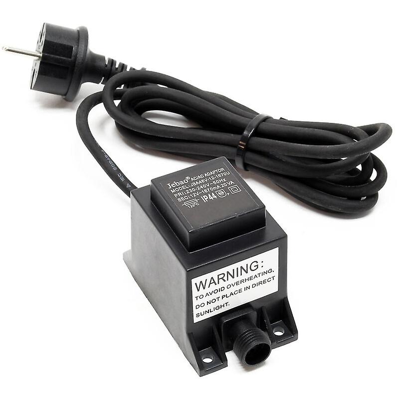 You will receive a transformer / voltage adapter 12 Volt 1670mA with low-voltage socket system for outdoor areas JBA48V-12-1670U suitable, among other things, for pond lighting JPL3 (WilTec-Art. 50420). current source 2-pol IP44 12Volt 1670mA 20VA AC/AC Reference 50424RegistrierungsnummerWEEE DE45283704 number of packages< td>1Weight in kg0.727Output voltage< td>12 Volt ~ 1670mA / 20 VAProtection class IP44 (protected against splashes)Input voltage 230 Volt / 50/60Hz / ACConnection mm / Schuko socket (230V) | 2-pole screw connection (15 mm male) (12V)cable length2 m< td>Weight [kg]0.7270Package: Height in mm170< tr>Package: Length in mm105Package: Width in mm70< /tr>Availability Immediate dispatch, shipping in 3-5 working days* NavigationPaket
