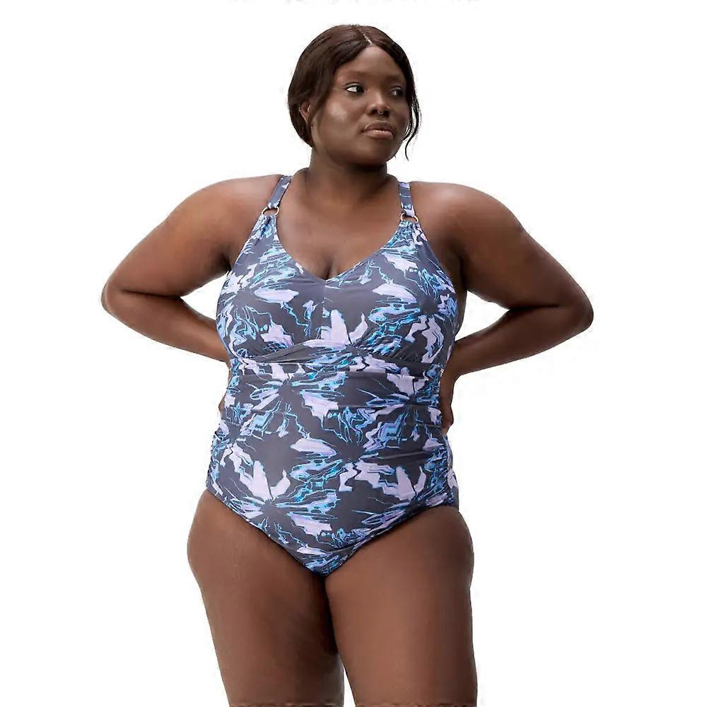 Speedo Shaping Printed V Neck Swimsuit Plus Size - Purple/Grey