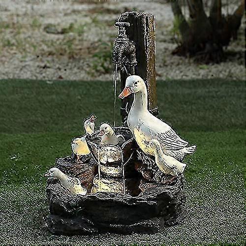 Solar Energy Squirrel & Duck Water Fountain Garden Statue