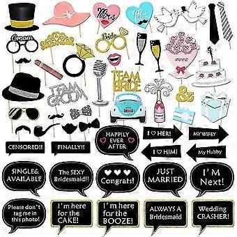 Kit d’accessoires de photobooth de mariage, accessoires de photomaton de fiançailles avec chevilles en bois pour douche nuptiale Cadeau de mariage Décorations de fête Drôle de selfie Pr