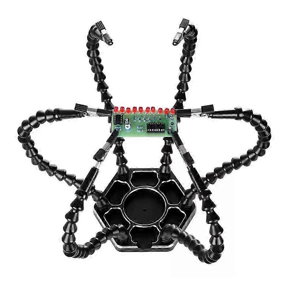 Product Description PCB Soldering Holder Helping Hands LED Lamp | 3X Magnifying Glass for Electronics Product Features: Third Hand Tool: Speeds up soldering, electronic, and DIY projects with six flexible arms for precise component positioning. Versatile Components: Includes 3 large rotating alligator clips, 1 3X-5X magnifying glass, 1 1X-4X zoom USB rechargeable flashlight, and 1 USB brushless DC fan. Components like clip/magnifying glass/flashlight are removable. High-Quality Base: Precisely cut, gold-anodized aluminum alloy base ensures stability and durability. Efficient Cooling and Fume Extraction: Brushless DC fan reduces soldering temperature and absorbs welding fumes. Heat-Resistant Clips: Silicone clip tips provide excellent heat resistance. Stable Operation: Movable feet ensure stable and independent operation. Anti-Skid Base: Aluminum alloy base with a black finish provides a non-slip surface for secure work. Ideal for Detailed Work: Perfect for complex soldering tasks like model aircraft maintenance, allowing for easy clamping and operation. Specifications: Magnification: 3X-5X Charging: Less than 5V 1.5A USB Type: USB cable Aluminum Alloy Base: 140mm x H11mm Length of Universal Joint Pipe: 300-400 mm (excluding accessories) Aluminum Alloy Background: Black Weight: 0.665 kg Package Includes: 1 x Aluminum Alloy Base 1 x 3X-5X Magnifying Glass 1 x 1X-4X Zoom USB Rechargeable Flashlight 1 x USB Brushless DC Fan 1 x Mini Wrench 1 x Mini Screwdriver 1 x Screw Nut 3 x Alligator Clips 6 x U-Joint Pipes Product Description: The PCB Soldering Holder Helping Hands LED Lamp is a versatile and indispensable tool for any electronics enthusiast. This tool accelerates the speed of soldering and electronic projects with its six flexible arms, allowing for precise positioning and secure component handling. Why Choose This Soldering Holder? Enhanced Precision: The 3X-5X magnifying glass provides clear and detailed views of small components, while the 1X-4X zoom USB rechargeable flashlight ensures proper illumination. Efficient Fume Extraction: The USB brushless DC fan effectively reduces soldering temperature and absorbs fumes, ensuring a safer working environment. Flexible and Adjustable: Six flexible arms and three large rotating alligator clips offer versatile positioning and secure holding of components. High-Quality Construction: The precisely cut and gold-anodized aluminum alloy base ensures durability and stability, while the heat-resistant silicone clip tips provide reliable performance under high temperatures. Convenient and Portable: With USB charging capabilities and a compact design, this tool is easy to use and transport, making it perfect for both professional and hobbyist use. Perfect for Various Applications: This soldering holder is ideal for a range of tasks, including: Model aircraft maintenance Electronic repairs DIY projects Soldering complex components Upgrade Your Soldering Setup: Experience the convenience and efficiency of the PCB Soldering Holder Helping Hands LED Lamp. With its versatile components, high-quality construction, and efficient cooling features, this tool is perfect for enhancing your soldering and electronic project workflows. Order now and take your precision soldering to the next level!