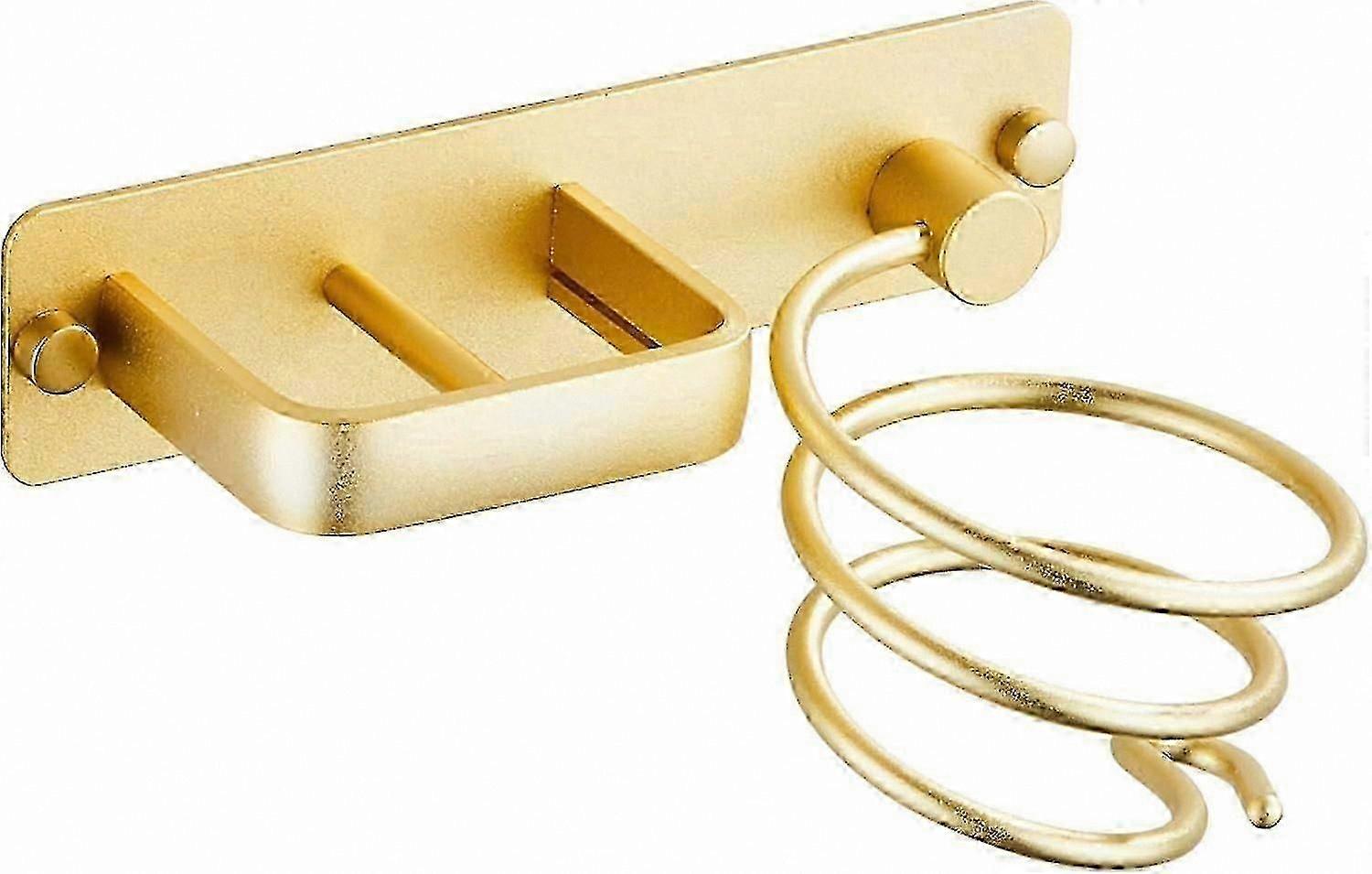 Wall-Mounted Hair Dryer and Straightener Holder with Cable Organizer Rack Gold