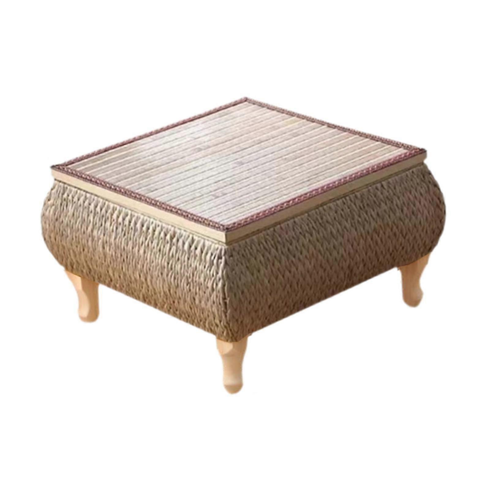 Rattan Coffee Table Rustic Japanese Floor Table for Farmhouse Office Dinning