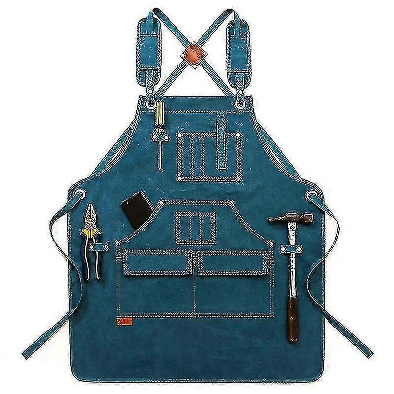 Heavy Duty Waxed Canvas Working Tool Apron With 9 Pockets, Adjustable Strap Aprons, Yellow Sx