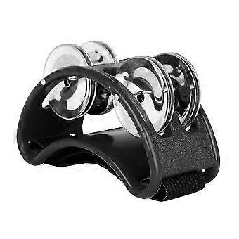 Tambourin à pied de percussion avec 4 paires de jingles en acier inoxydable et instrument de musique de percussion à sangle élastique pour l’accompagnement de cajon