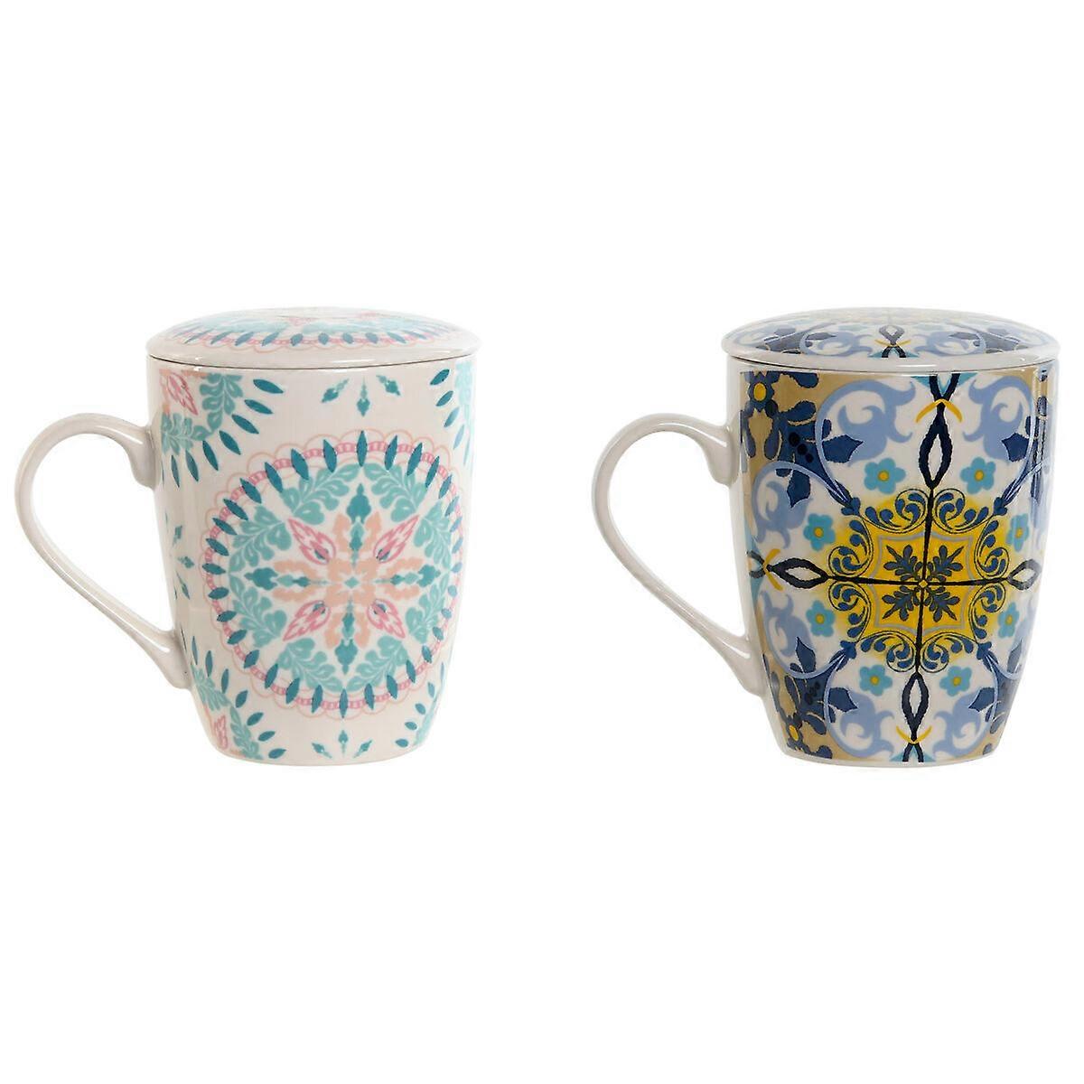 Cup with Tea Filter Home ESPRIT Blue White Turquoise Mediterranean 340 ml (2 Units)
