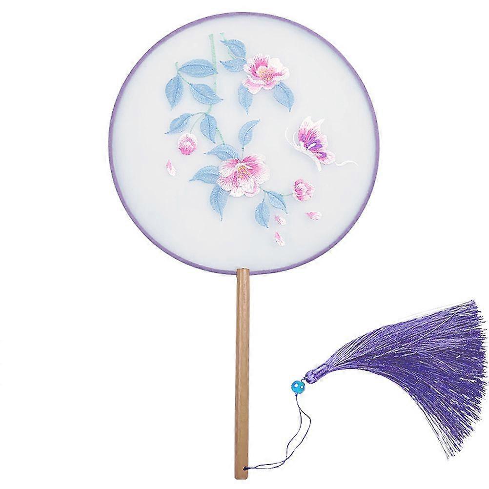 Tassel Circular Fan Chinese Fan Embroidery Hand Circular Fan Traditional Style Fan