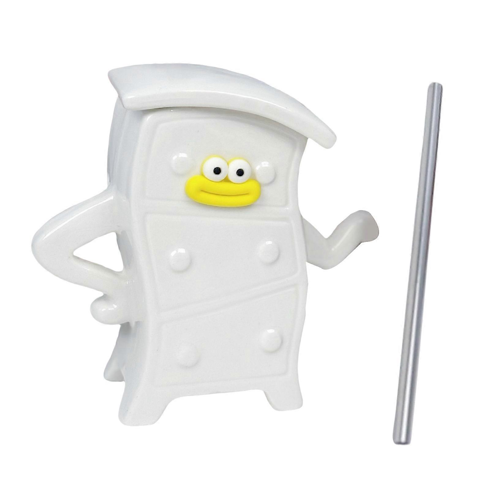 Cartoon Milk Teas Cups with Handle Ceramic Coffee Mug Lovely Cabinet Coffee Cups Birthday Gift for Women and Men White