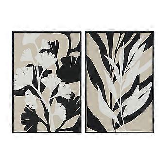 Canvas Home ESPRIT White Black Beige Leaf of a plant Urban 63 x 4,3 x 93 cm (2 Units)