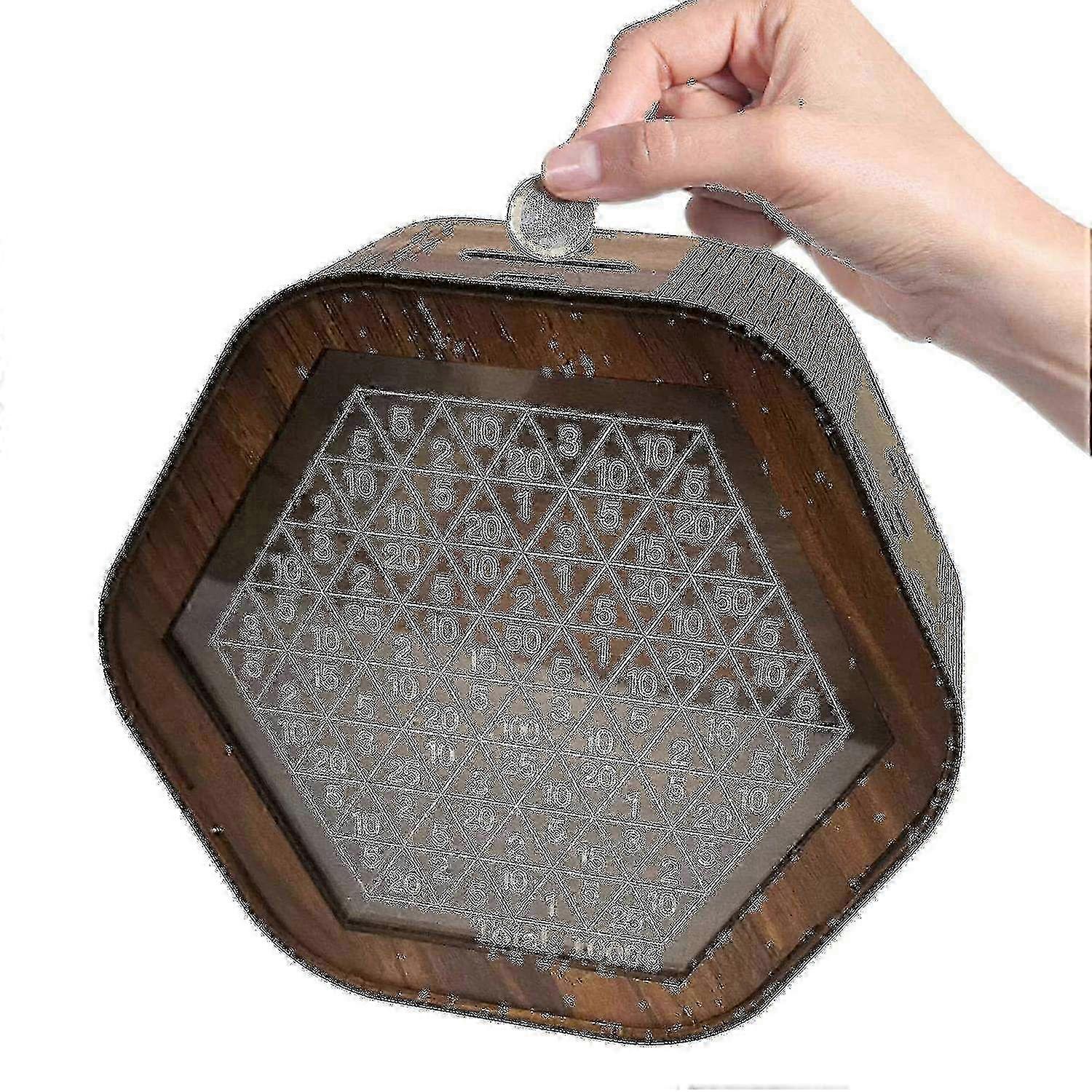 Features<br> 1. Unique design: the hexagonal design makes the space bigger and stronger, and the transparent plate allows you to see the coins inside at any time. It is easy to disassemble and assemble and is reusable. Once you have achieved your first savings goal, you can start immediately with your second savings goal.<br> 2. Economy box with economy targets: makes saving more fun. You can always see success on the money box, gradually the joy of saving. Therefore, it is also a good thing for children, saving does not get boring.<br> 3. Savings target 1000: To achieve your goal of 1000, you must enter the amount printed on the hexagonal box, when all boxes are crossed you have achieved your destination.<br> 4. This piggy bank is made of quality eco-friendly wood materials with exquisite appearance, smooth surface, smooth lines and at the same time a sense of modernity and technology, so you can enjoy an art while using it and aesthetic experience.<br> 5. A piggy bank for everyone: a money box for adults and children. Suitable for all ages. Help everyone achieve their savings goals.<br> Specification<br> Material: Wooden<br> Color: Brown<br> Size: 19 x 6.5 cm<br> Weight: 270 g<br> Package Include:<br> 1x Money Box<br> Note: Due to the light and screen setting difference, the item's color may be slightly different from the pictures. Please allow slight dimension difference due to different manual measurement. Sold by-YJL official store