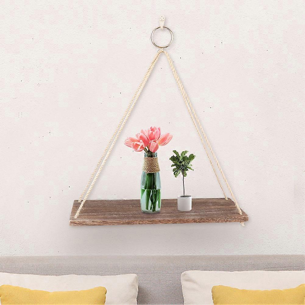 Touch Swing Planter Shelf Wood Swing Shelf Flower Pot Wall Hanging Rack Balcony Garden Planter Stand Holder (Brown)
