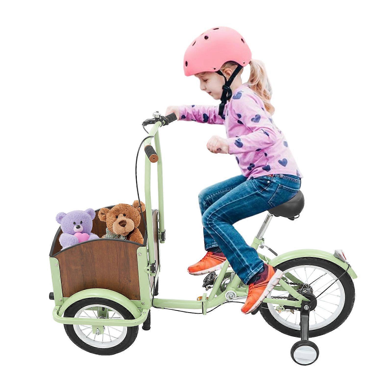 16in Children's Tricycle with Training Wheels Foldable Height Adjustable Tricycle With Basket