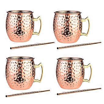 Copper Mugs - Set of 4-handcrafted- Copper Mugs Gift Set with Bonus :4 Cocktail Copper Straws