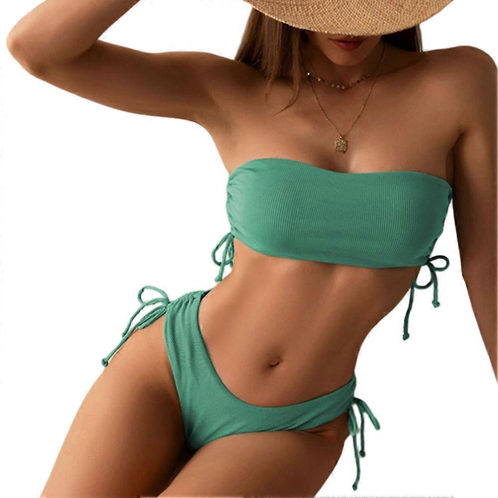 Green S Women Halter String Bikini Set Sexy Thong Cheeky Two Piece Swimsuits Solid Color Bathing Swimwear