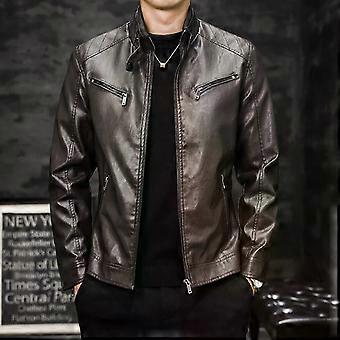 Men's Slim-Fit Washed PU Leather Motorbike Jacket-Coffee,Sizes M & XXL Coffee,XXL