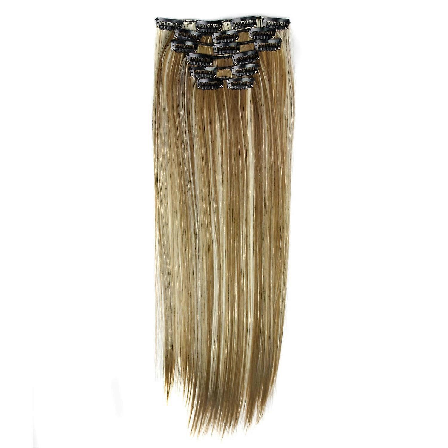 Zlezpi Hair Extensions Tools 6Pcs Full Head Natural Women 16 Clips Synthetic Straight Hair Extensions